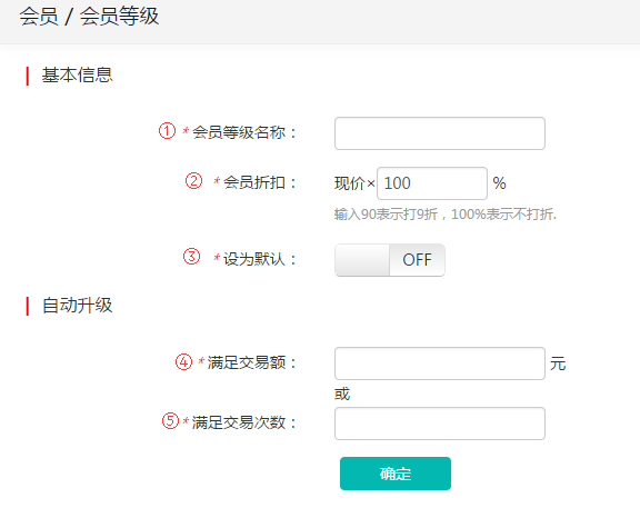 ⑤ 交易次数:达到设置的交易次数后,会员等级会自动升级;