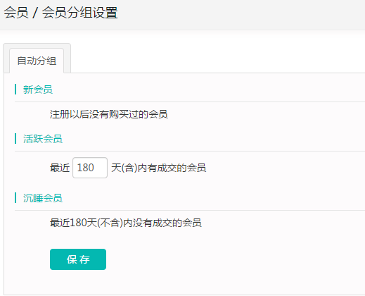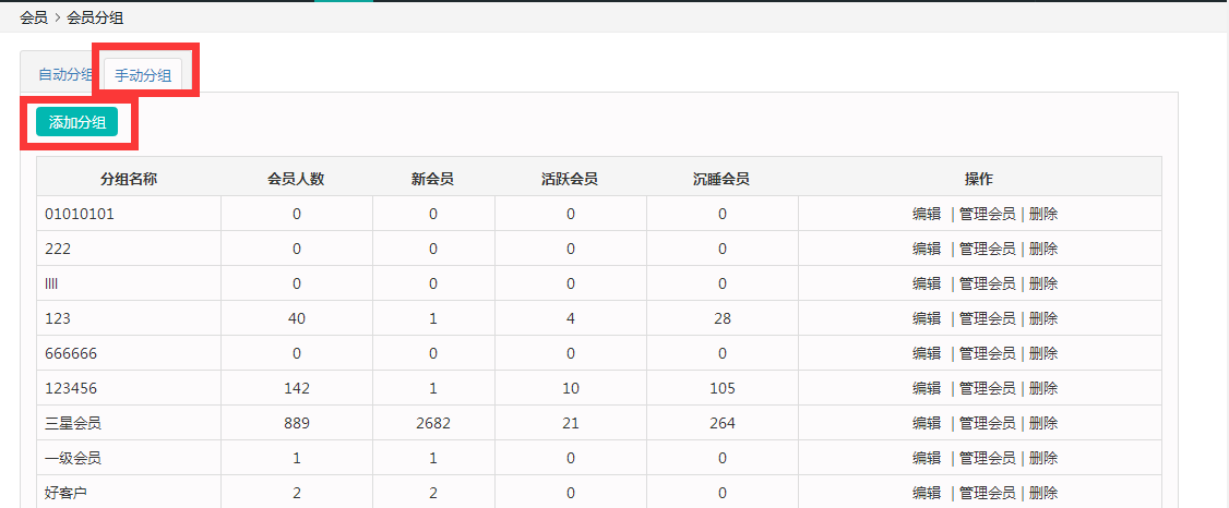 系统有自动分组,需要额外管理会员的话,可以手动添加分组,填写分组名称。