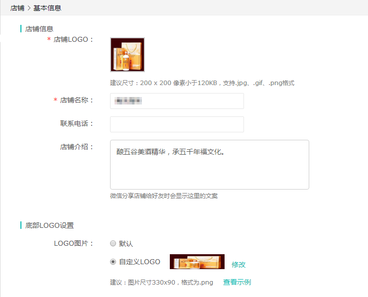 店铺信息:店铺名称、联系电话在此处编辑,