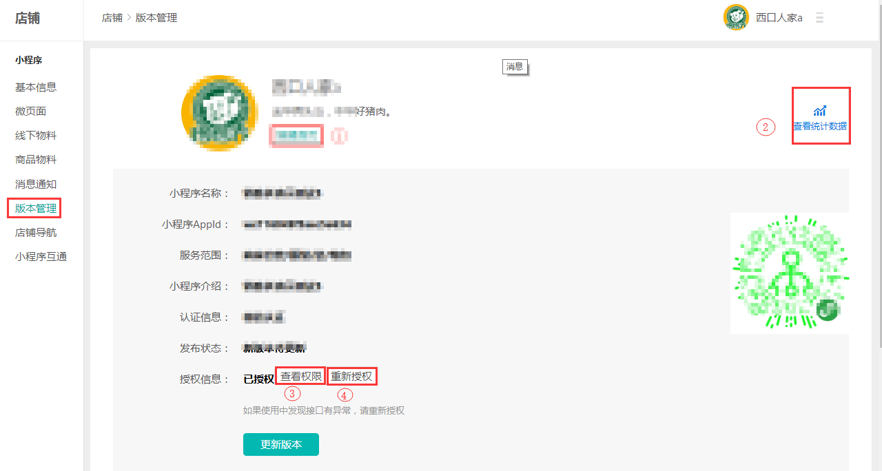 ④重新授权:如需要重新绑定新的小程序或者需要,点击此按钮操作再点击上传审核即可;