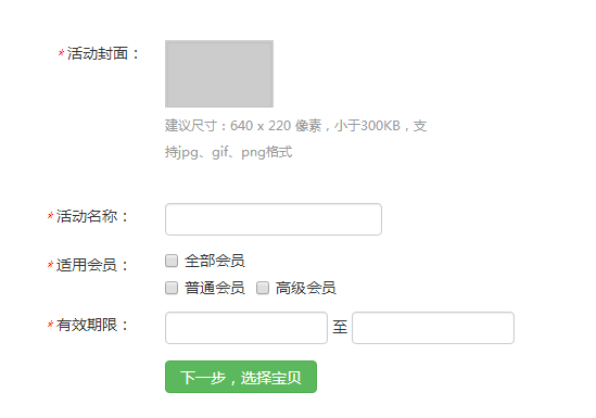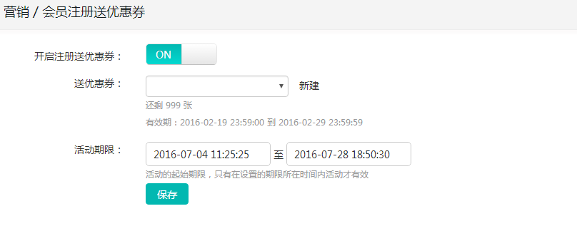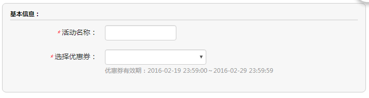 ④ 有效期限:优惠券开始使用时间和过期时间的设置;