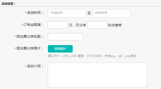 ④ 订单满额设置:订单满多少元时可分享设置的优惠券数量;