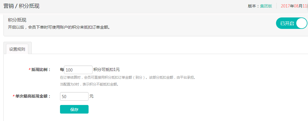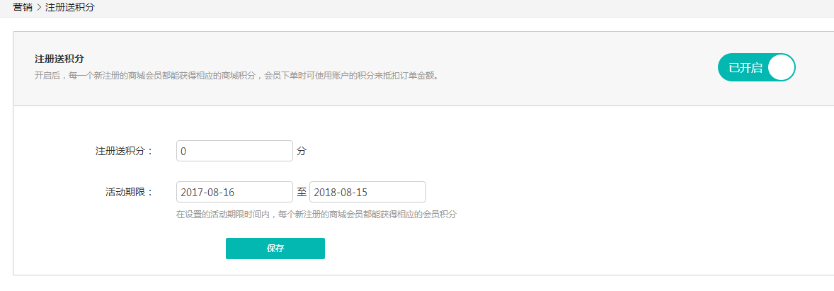 ⑤ 消耗积分:用户每次参与活动需要消耗积分,值为0时不消耗;