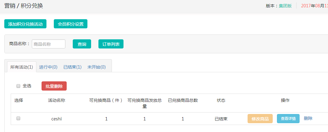 ④ 搜索:可根据商品名称,活动时间和结束时间进行搜索;