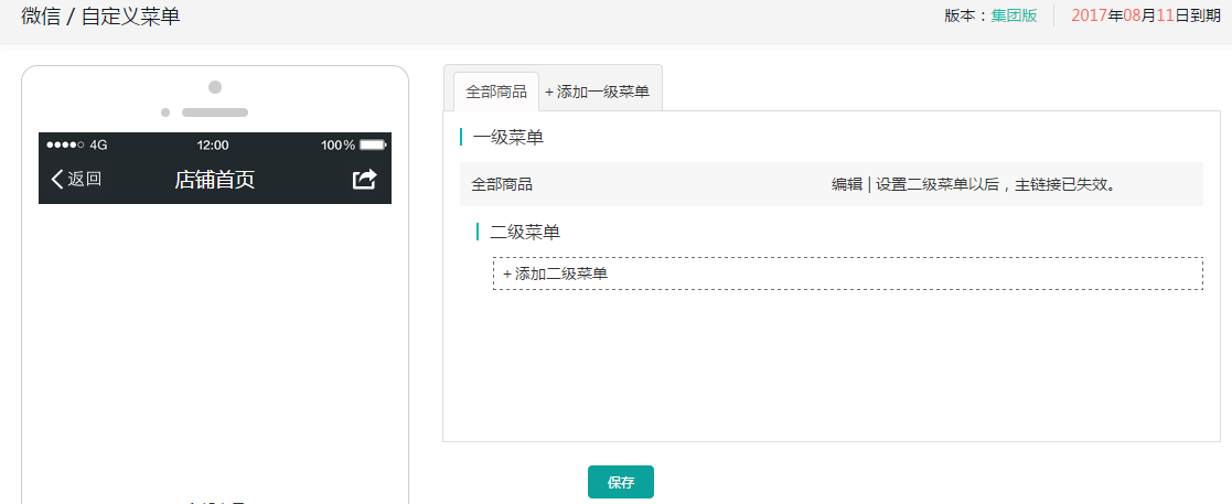③一级菜单:点击编辑会弹出编辑菜单的内容;(最多添加3个一级菜单)