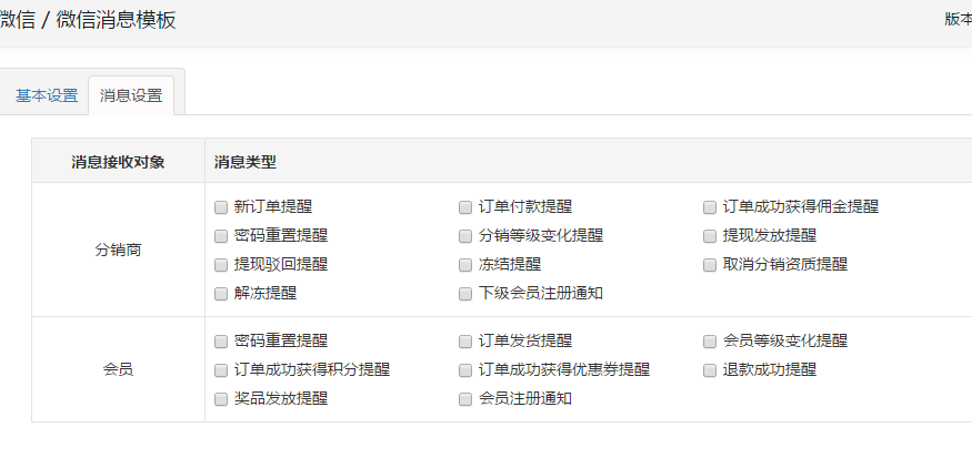 点击消息设置可以根据接收对象设置接收到消息类型(注:只有勾选上对应的消息通知,才能接收到对应的消息提醒)