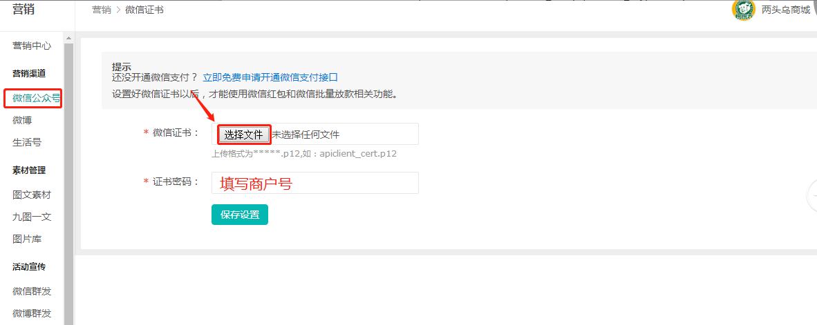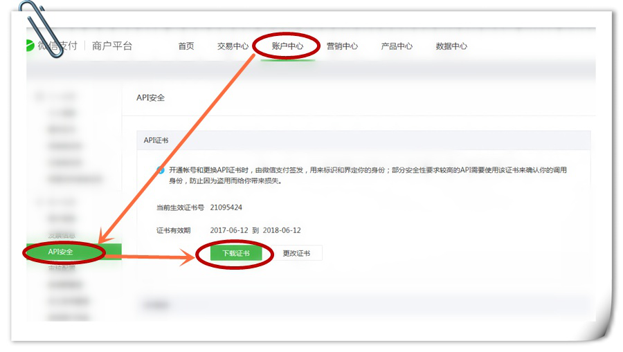 获取证书:登陆商户平台--账户中心--API安全--下载证书