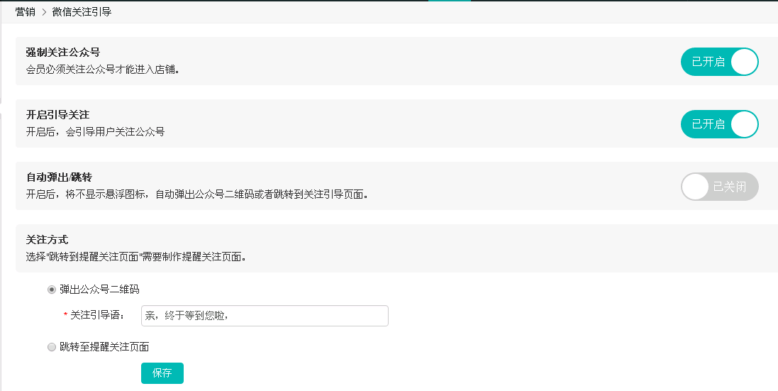 ①强制关注公众号:开启后会员必须关注公众号才能进入店铺;