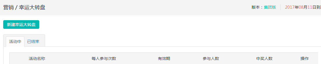 ① 新建幸运大转盘:添加新的幸运大转盘;