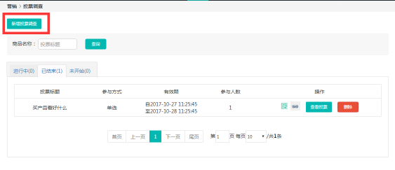 ⑥ 操作:可通过二维码、链接地址参加投票调查的活动,可查看投票、可进行编辑或 者删除;