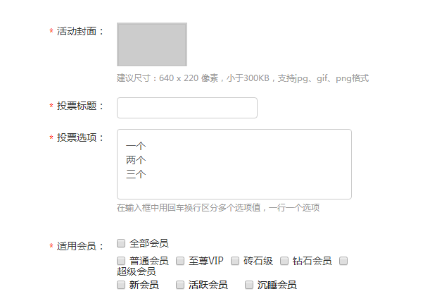 ④ 投票标题、投票时间、参与方式、按实际情况选择填写即可