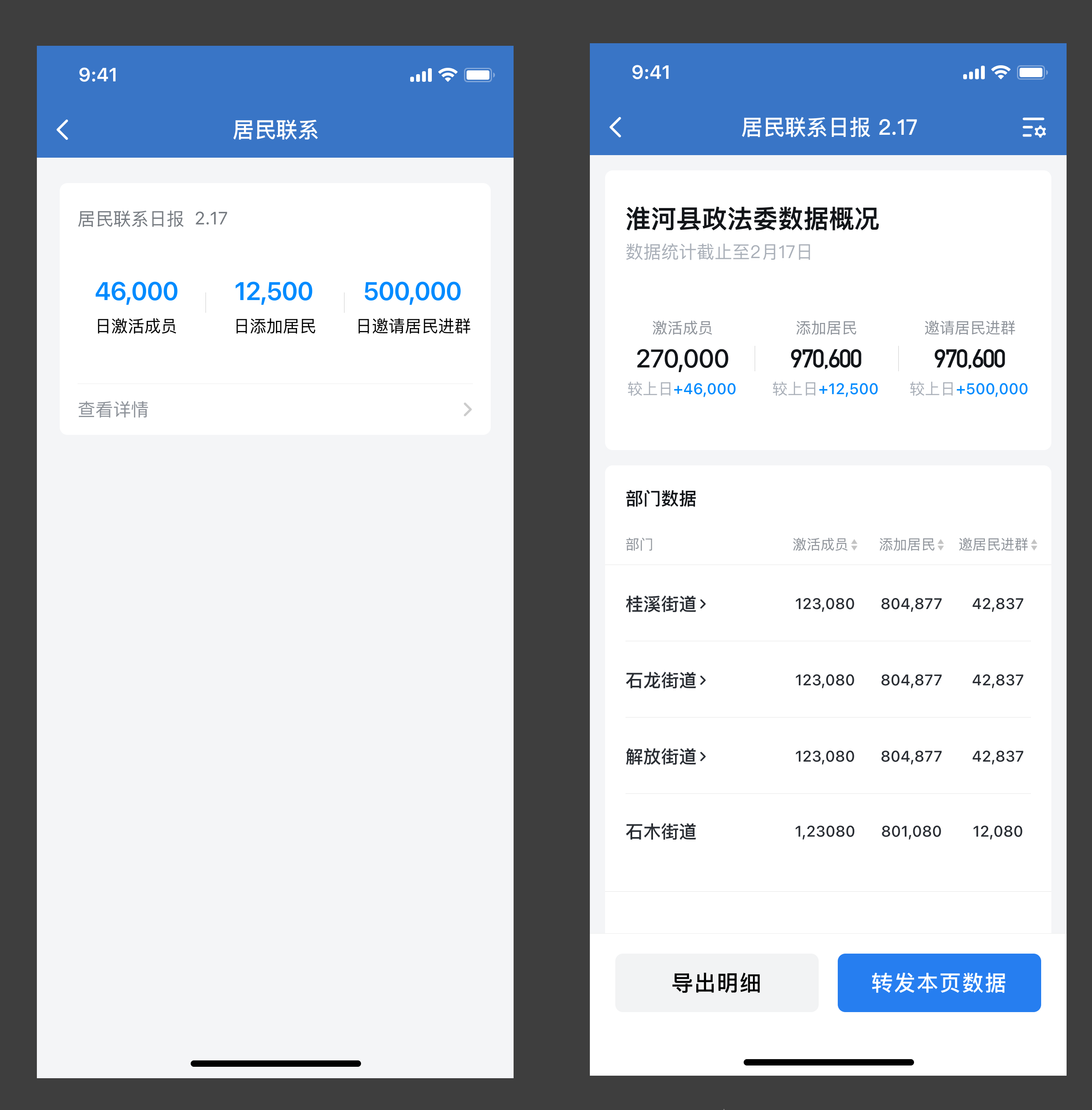 1.居民联系日报是什么:居民联系日报是 3.1.8 版本新增的功能,目前支持一级行业为政府的单位使用。我们每天统计单位的网格治理数据,包括「激活成员数」、「添加居民数」、「邀请居民进群数」,以日报的方式发送给单位成员,支持分部门查看和排序。旨在帮助管理者随时掌握工作进度,加快工作进程还减轻了不少成员的工作压力!
