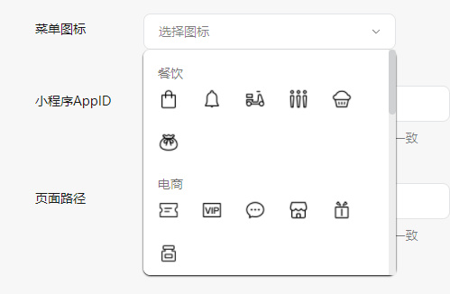 选择合适的菜单图标,输入小程序AppID ,输入页面路径即可完成(页面路径不填就直接进入小程序首页。