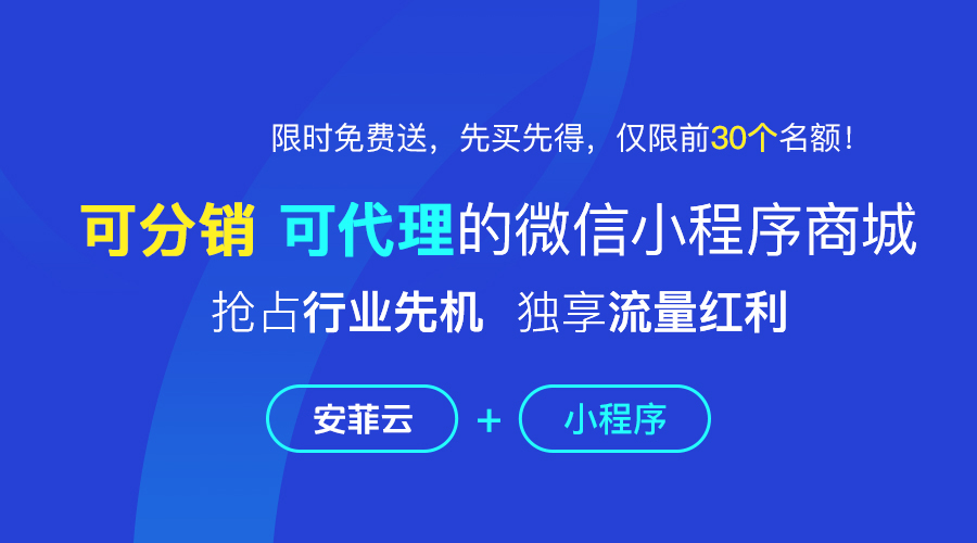 安菲云小程序拥有强大的商城、分销、代理等功能,支持满减、一键发布等等,超级强大。7月小程序免费送,还不快来!